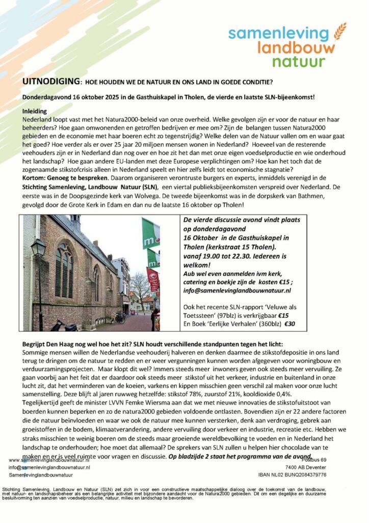 UITNODIGING: Donderdagavond 16 oktober 2025 in de Gasthuiskapel in Tholen, de vierde en laatste SLN-bijeenkomst!